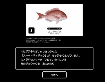 「SUSHI QUEST」は、万博会場内「スシロー未来型万博店」に設置されたデジタルレーン「デジロー」限定で提供される水産学習ゲームです。水産資源の課題や持続可能性に関する技術を、クイズ形式で楽しく学べる構成となっており、店内客席から操作・参加が可能です。ゲーム内では、水産業の先端技術事例として「AI魚体サイズ測定カメラ」「IoT水質センサー」の画像および解説が紹介されており、来店者は最新のAI技術や魚体管理の取り組みについて、ゲームを通じて気軽に学ぶことができます。